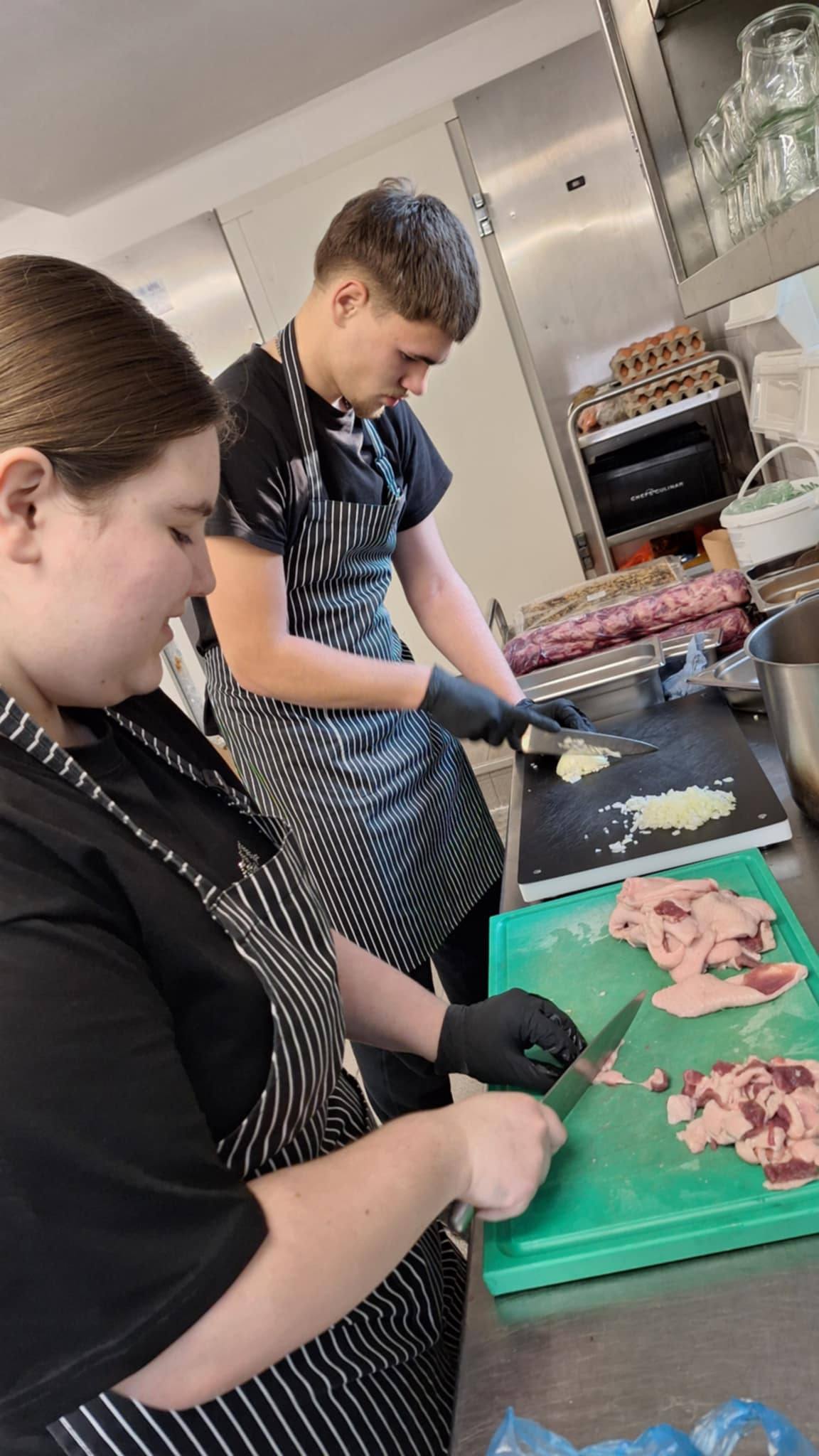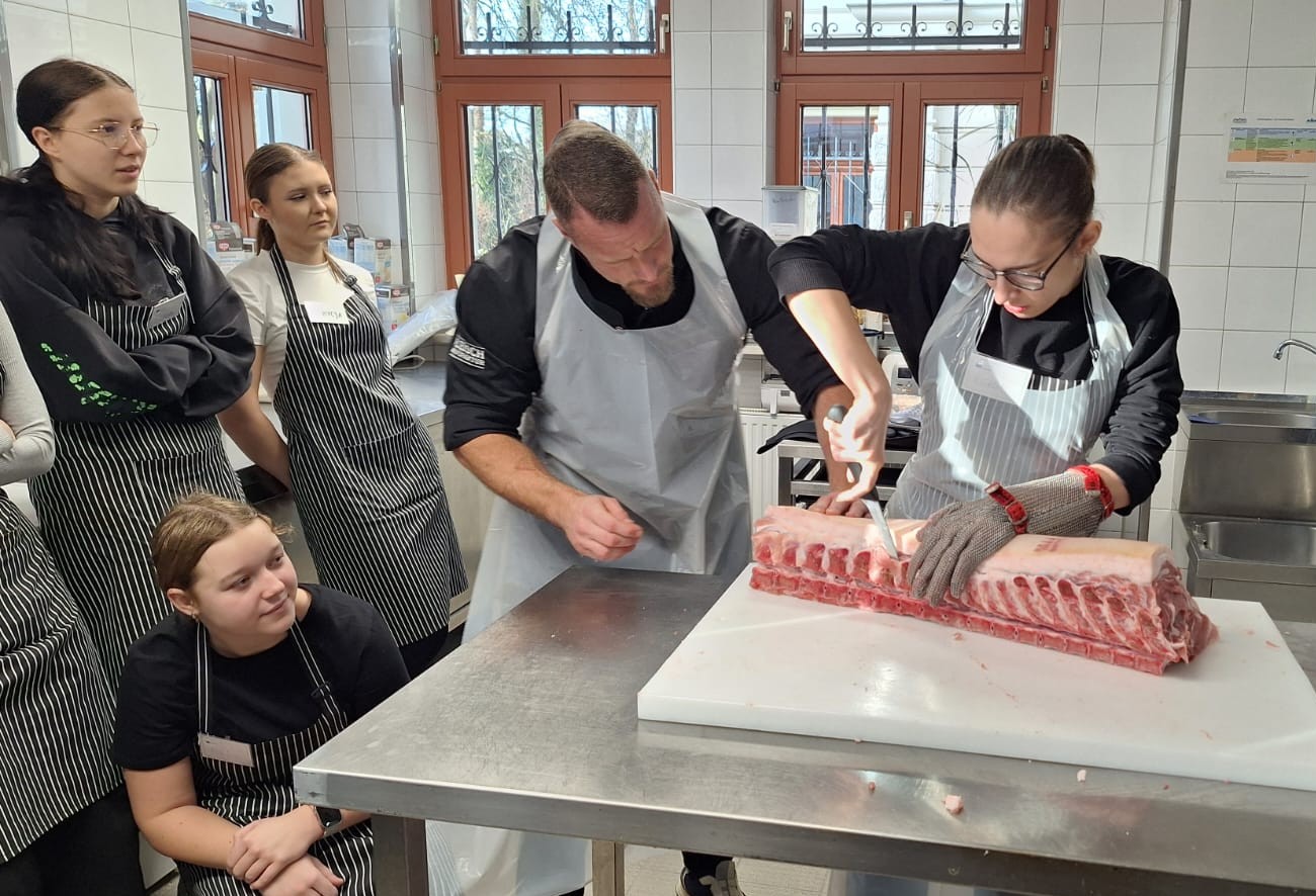 Jak co roku instruktorzy w Bildungsnetzwerk Magdeburg postarali się, by rutynowe czynności w kuchni wzbogacić tematycznymi warsztatami. Uczniowie z Zespołu Szkół nr 1 w Ostrzeszowie uczyli się rozpoznawać i stosować przyprawy, przyrządzać napoje okolicznościowe i … rozbierać tuszę wieprzową. Ostatni warsztat wzbudził wiele emocji i odkrył nieznane oblicza zawodu. Niektórych zafascynowały samodzielnie zrobione wędliny, a inni podjęli decyzję, że pracować będą tylko w vege-gastronomii J Niezapomnianych wrażeń dostarczyła też wycieczka do zabytkowego Quedlinburga, który objęty jest ochroną UNESCO. Za to dla niemieckich opiekunów niespodzianką była polska kolacja przygotowana przez praktykantów, której tematem przewodnim była gęsina. Za rok poprzeczka stoi wysoko, gdyż uczniowie otrzymali wysokie oceny za swój warsztat.